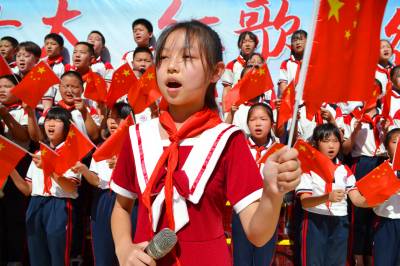“我爱你中国,亲爱的母亲……”2022年9月29日,湖北省十堰市郧阳区柳陂中心小学校园里歌声嘹亮,小学生正在齐唱红歌。