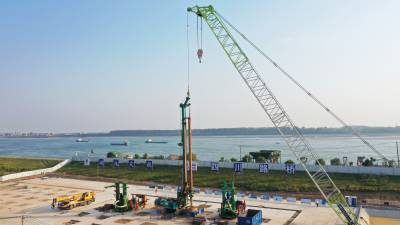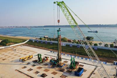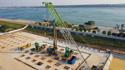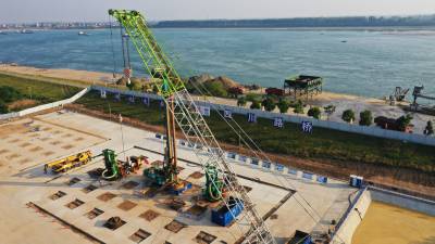 9月30日,宜昌枝江长江大桥主墩桩基工程全面启动。当枝松高速公路枝江长江大桥从江北枝江市滕家河村,跨越长江至万里长江第一洲——百里洲,采用主跨890米双塔混合箱梁斜拉桥,一跨经过长江通航水域,大桥为目前世界最大跨度组合梁斜拉桥。大桥采用双向六车道高速公路标准,接线为双向四车道高速公路标准,设计车速80公里/小时,过江通道还兼顾了长江两岸居民便捷出行。项目建成后,对实现两湖平原在西部联通和“宜荆荆恩”城市群互联互通,加快长江经济带发展具有重大意义。视界网刘卫东摄