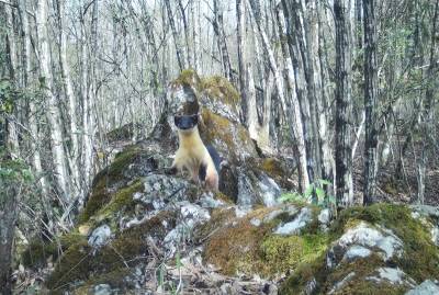 近日,湖北堵河源国家级自然保护区墨池管理站工作人员在整理红外相机资料时,发现4月初再次抓拍到的国家二级保护动物黄喉貂在林中岩石上徘徊的珍贵照片。