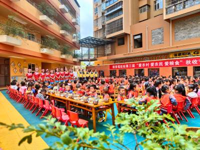 800多名孩子参加了割稻谷、掰苞谷、挖红薯、摘辣椒、脱谷子,并用收获的果实制作美食等活动,孩子们激情高涨,积极参与,孩子们亲近自然,感受秋色之美,动作操作体验,了解了秋天的特征,体验了农民伯伯的艰辛,感受了家乡秋景之美,培养了孩子们爱自然、爱农村、爱农民、爱粮食的珍贵情感。