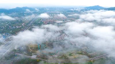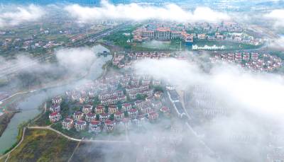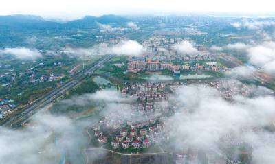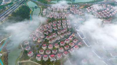 10月7日清晨,湖北省襄阳市襄城区尹集乡农家房屋错落有致,村庄、田园、公路在晨光照射下焕发勃勃生机。