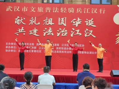 9月29日下午,由武汉市司法局、市文化和旅游局、江汉区委依法治区办主办,区委宣传部、区司法局、民权街道办事处协办的武汉文旅普法轻骑兵江汉行"献礼祖国华诞共建法冶江汉"喜迎二十大文艺汇演活动,在民权街道王家巷社区长航中心小区举行,吸引了社区居民观赏点赞。