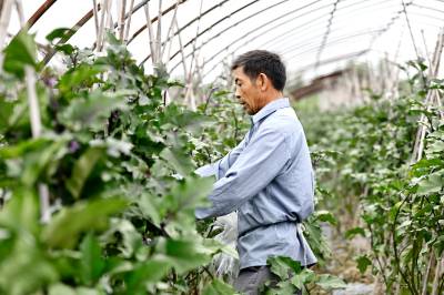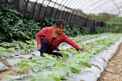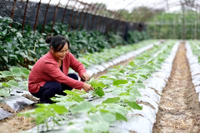 2022年8月30日,气温下降旱情缓解,在武汉市东西湖区慈惠街八向大队,农户正在地里查看刚长起来黄瓜苗,并对其他作物进行养护。据介绍,慈惠街以蔬菜、瓜果种植为主,共计3065亩地。自发布高温预警以来,该街道积极引水抗旱,汉江堤慈惠段的4台泵船就是24小时不停机,针对农业生产和乡村振兴用水需求,及时抽水,为涉农大队提供用水保障。目前,街道在完成取水泵船取水工作后及时对取水泵船进行维修保养,并派工作人员在田间实地查看用水情况,进一步确保农业生产的正常进行。(湖北日报全媒记者 倪娜 通讯员 王寒竹 摄)