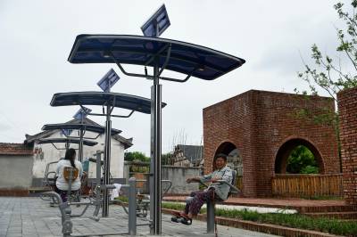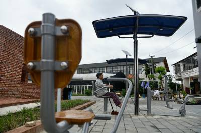 2022年8月30日,武汉市东西湖区慈惠街蔡家大队,村里的老人正在智能健身器材上锻炼。现场看到,设备有遮阳挡雨的顶篷,采用太阳能供电,智能健身器材包括了蹬力器、椭圆机、划船机等功能,每部器材上均安装了传感器模块,可对锻炼者的运动时间、次数、里程、热量消耗等进行计算,并通过小程序进行数据采集和一键分享,为当地村民和前来旅游的市民休闲健身提供方便,同时感受科技健身带来的乐趣。 (湖北日报全媒记者 倪娜 通讯员 徐卉婷 金齐天 摄)