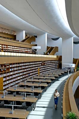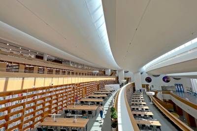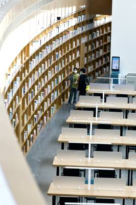 2022年9月27日,位于武汉市临空港经济开发区(东西湖区)文化中心的市民阅读中心各项准备就绪,28日将与市民见面。据介绍,该市民阅读中心由东西湖区图书馆和“文化策展区”组成,总共五层,共计2.8万平方米,目前藏书量45万册,总藏书量可达100万册,按国家一级图书馆标准建造,包含了竹林阅览区、策展区、借阅区、主题区、公共活动区等多个区域。 (湖北日报全媒记者 倪娜 通讯员 晏君 摄)