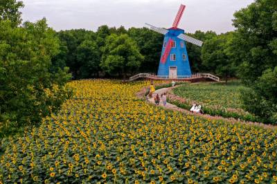 看“天空之伞”赏向日葵花海 郁金香主题公园向日葵花展24日开幕