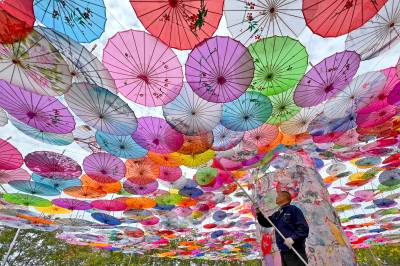> 看“天空之伞”赏向日葵花海 郁金香主题公园向日葵花展24日开幕