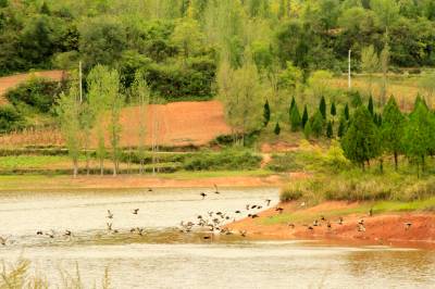 2022年10月9日,十堰市房县杏水沟水库湿地水清山绿,一群野鸭循着水面低空翔舞。近年来,房县秉持“当好‘守井人’共护一库清水”的水生态保护强监管理念,践行“美好环境与幸福生活共同缔造”行动,探索出一条“水清、人和、村美”的乡村振兴之路。目前,当地已全面推行“县、乡镇、村”三级责任人实名制管理水库,每座水库由一名水管理员担当守“井人”,实现联护共护一库清水,为美丽乡村“美颜”,为野鸭、白鹭候鸟搭建了安居的家园。