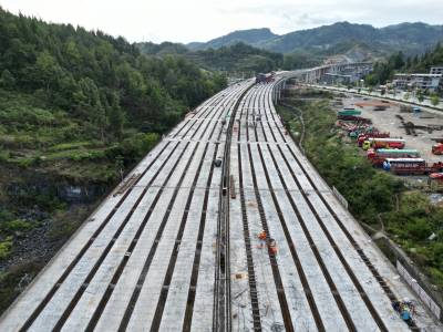 花湖国际机场铁路联络线首个连续梁0#块顺利浇筑(客户端采稿)