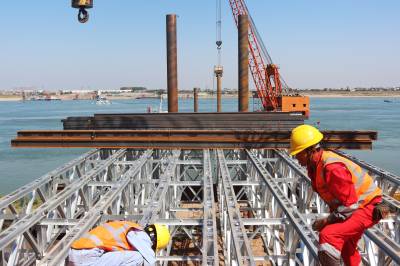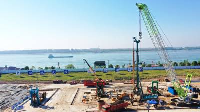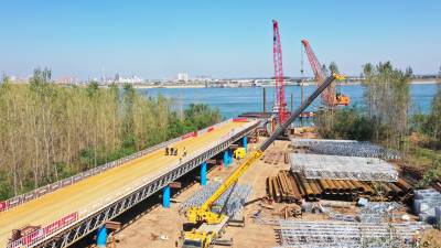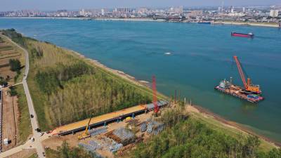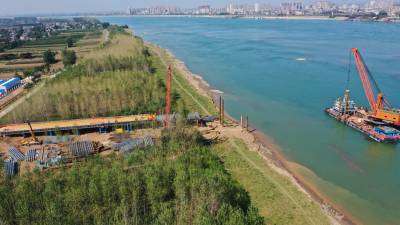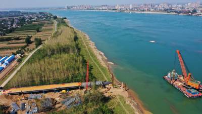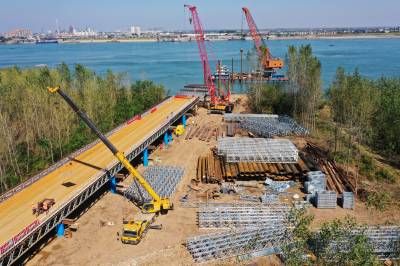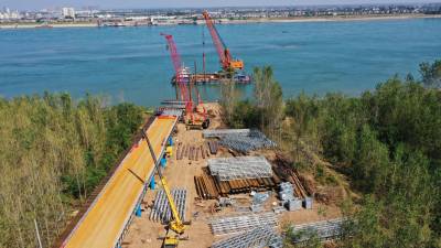 10月11日,枝江长江大桥主墩施工正在加速进行。当枝松高速公路枝江长江大桥从江北枝江市滕家河村,跨越长江至万里长江第一洲——百里洲,采用主跨890米双塔混合箱梁斜拉桥,一跨经过长江通航水域,大桥为目前世界最大跨度组合梁斜拉桥。大桥采用双向六车道高速公路标准,接线为双向四车道高速公路标准,设计车速80公里/小时,大桥设有人行通道和非机动车通道可方便长江两岸居民出行。项目建成后,对实现两湖平原在西部联通和“宜荆荆”城市群互联互通,加快长江经济带发展具有重大意义。视界网刘卫东摄