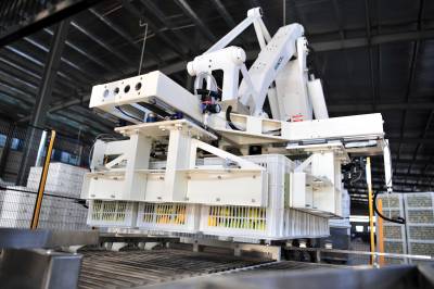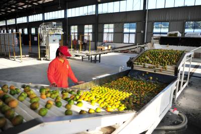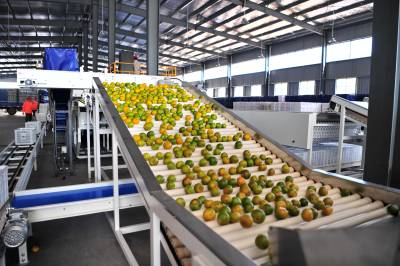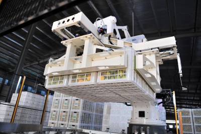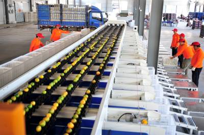 2022年10月11日,由宜昌市夷陵区星翔农产品专业合作联社在小溪塔街道官庄村,投资兴建的7.0柑橘光电无损分级生产线上搬运柑橘的机器人正式上岗。这是湖北省内7.0柑橘光电无损分级生产线上安装的首台机器人,可一次抓取6框柑橘,每小时可搬运柑橘上生产线25至30吨,不仅提高了工作效率,还大大节省了劳力,助力当地对柑橘进行精细分级和包装,“抢鲜”供应果品市场。