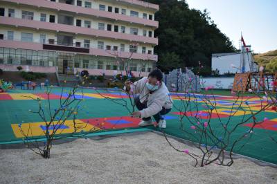 连日来,该园在周鑫园长的带领下,组织在园幼儿教师就地取材,一起进行环境创设布置。她们在山上砍来树枝,先去叶、修枝,后用多彩的轻黏土,制作成缤纷的树枝,作为楼道吊饰,时刻准备迎接幼儿们返园。