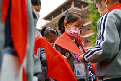 当日上午,少先队出旗曲声在校园上空响起,火红的队旗高高飘扬,队员们通过观看大屏幕学习少先队历史、礼仪规范,重温入队誓词。随后还举行了第二批264名少先队员入队仪式,手把手教新队员敬队礼、佩戴红领巾和呼号等,引导他们迈开成长第一步,扣好人生第一粒扣子。