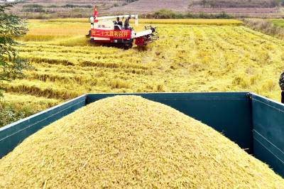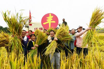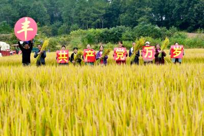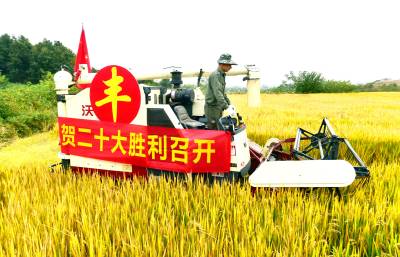 2022年10月16日,湖北省襄阳市南漳县九集镇郑家畈村闵稔种植专业合作社的社员用丰收的喜悦庆祝党的二十大胜利召开。当日,正值中国共产党第二十次代表大会胜利召开,也是闵稔种植专业合作社优质、有机粳稻开镰之日。社员们手持“共产党万岁”的字牌早早来到种植基地,用丰收的喜悦庆祝党的盛会。