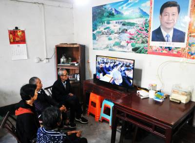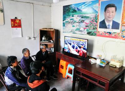 10月16日,巴东县官渡口镇东坡社区八组老党员向国坤一家子在收看二十大直播。 向国坤1942年出生,1973年入党,在原东坡村任支部书记、村委会主任30余年,鞠躬尽瘁。退休后,不忘党恩,关注国家大事,热衷学习,学习笔记近10本,字数约20万字。(视界网 梁勇 摄)