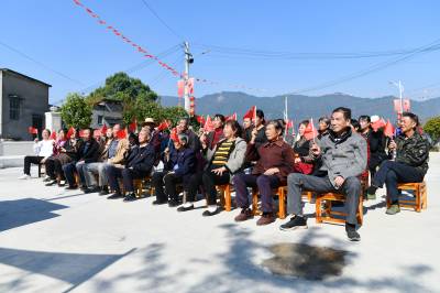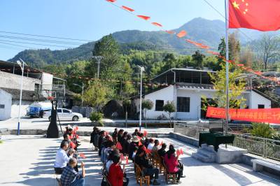 通城县关刀镇道上村万家山屋场近200村民生活在高山上,靠打工致富,吃住上了楼房,吃上了自来水,通了水泥路,修建了文化广场,每月1日,村民自发举行升国旗仪式,唱国歌,幸福生活来之不易。