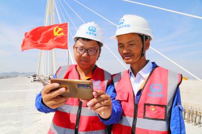 湖北建设者在珠海金海大桥收听收看党的二十大开幕会(客户端采稿)