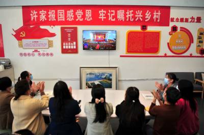 2022年10月16日,中国共产党第二十次全国代表大会在北京召开,湖北宜昌各界干部群众欢欣鼓舞,纷纷通过各种渠道收看中国共产党第二十次全国代表大会开幕会直播。习近平代表第十九届中央委员会向大会作的报告,在荆楚大地引起强烈反响。大家纷纷表示,将深入学习贯彻党的二十大精神,不忘初心,牢记使命,全面贯彻习近平新时代中国特色社会主义思想,以更加饱满的精神状态,紧密团结在党中央周围,坚定信心、同心同德,埋头苦干、奋勇前进,为全面建设社会主义现代化国家、全面推进中华民族伟大复兴而团结奋斗!(视界网 张国荣 摄)