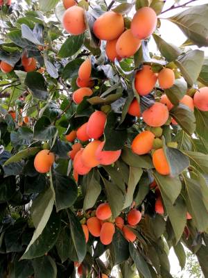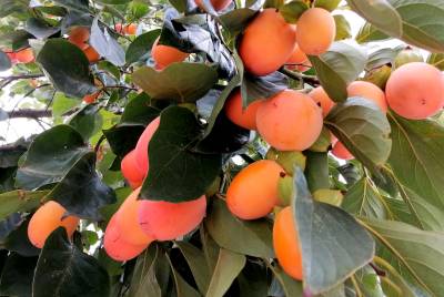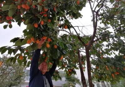 10月18日,湖北省竹山县宝丰镇花栗树村二组村民刘本超家门前种植的甜柿子,一簇簇,红彤彤,压弯了枝头,大旱之年仍累累果实让刘本超喜上眉梢。