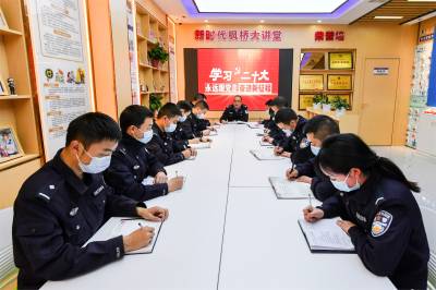 2022年10月23日,保康县公安局马桥派出所利用周日勤务间隙,组织民警深入学习领会党的二十大精神。
