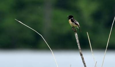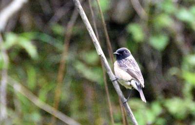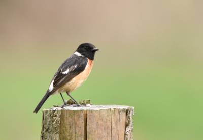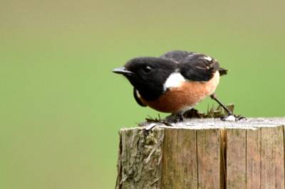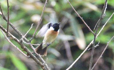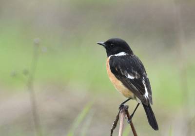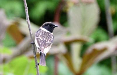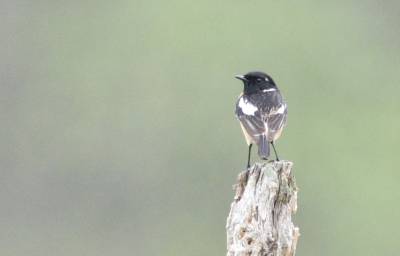拉丁学名:Saxicola torquata 。夏候鸟。为雀形目、鹟科、石鵖属、黑喉石鵖种。体重12-22克,体长12-15厘米。整个头部为黑色,背和肩亦黑微缀棕栗羽缘,至腰逐渐变灰,尾上覆羽白色;颈侧具白斑,亦具棕栗羽缘;飞羽黑褐,外侧覆羽黑而内侧覆羽白色;尾羽黑色;胸部栗棕色,至腹部逐渐变淡成淡栗棕色。