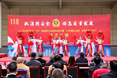 今年的11月是全国第31个全国消防宣传月,主题是“抓消防安全,保高质量发展”,11月7日上午,湖北省襄阳市保康县消防救援大队在湖北尧治河楚翁泉酒业有限公司举办了“119”消防宣传月活动启动仪式暨“人民消防心向党,青春献礼二十大”文艺汇演。当日,该县消委会成员单位代表以及20家重点单位代表共同参加启动仪式,观看文艺汇演。在启动仪式上,由该县消防救援大队、艺术团和湖北尧治河集团联合开展了消防元素演出活动,用群众喜闻乐见的方式,让“火焰蓝”新形象和消防安全知识更加深入人心。(视界网 刘旭/摄)