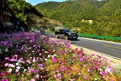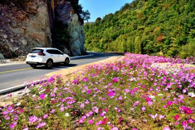 近日,郧西城关镇至三官洞林区二级公路“郧三路”建成通车,公路两旁波斯菊盛开,蝶飞蜂舞,让人恍若深秋如阳春。