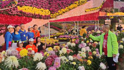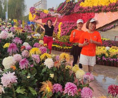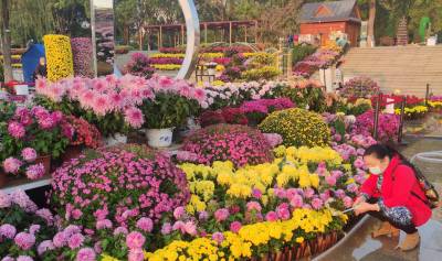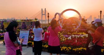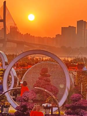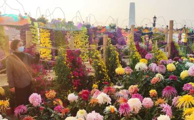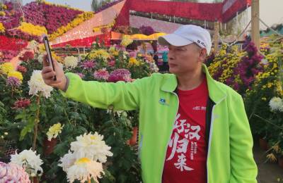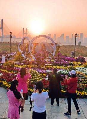 > 武汉:立冬之晨市民在汉口江滩赏菊花