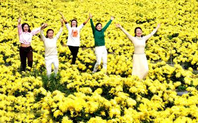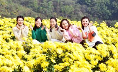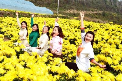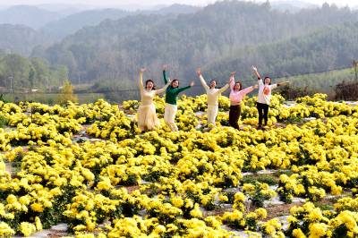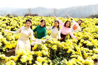 2022年11月5日,满地金色的湖北省襄阳市南漳县武安镇迎来四面八方的游客前来观光赏菊。菊花种植是武安镇乡村振兴重要产业项目之一。他们结合本地实际,着力打造集生态效益与经济效益于一体的绿色生态产业。实行“公司+合作社+基地+农户”的发展模式。所种植的菊花品种以向家湾村的金丝皇菊和老街村的野菊花为主。向家湾村金丝皇菊产业观赏性强且经济价值高,目前基地规模50多亩,亩产鲜花达3500斤以上,单价在5-7元之间;老街村野菊花基地规模2000余亩,现已带动全镇13个村发展野菊花产业,总面积达5000余亩,亩产干花150斤左右,单价达30元。目前,菊花产业已带动周边200百余户家庭实现属地就业,平均年增收15000元以上。菊花不仅扮靓了乡村,而且增加了集体经济收入,鼓起了村民的钱袋子,成为全镇人民的致富之花。