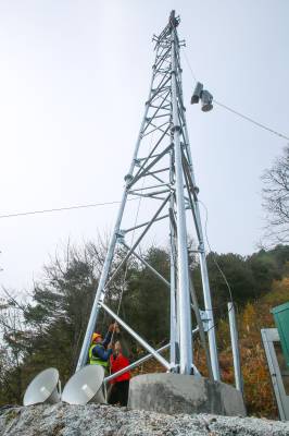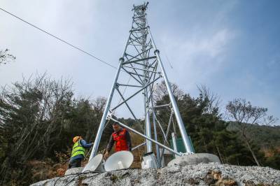 时下,在宜昌市秭归县九岭头林场的各个瞭望哨点,工人们正抢抓晴好天气,加紧安装高点双光云台摄像机、号角扬声器等智慧防火设施设备,高山森林一派忙碌景象。