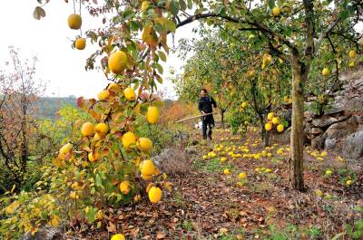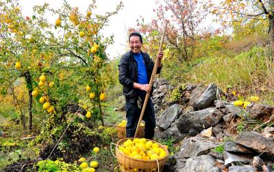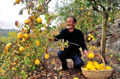 2022年11月7日,十堰市郧阳区刘洞镇杨河村四组农民曹祥德正在山上采摘木瓜出售。他家在黑石山上种植了20亩木瓜,年收入达1.6万多元。