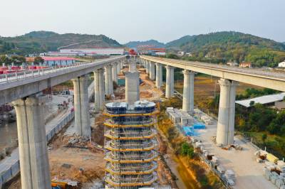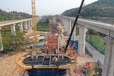 花湖国际机场铁路联络线首个连续梁0#块顺利浇筑(客户端采稿)