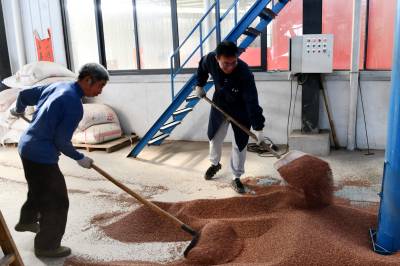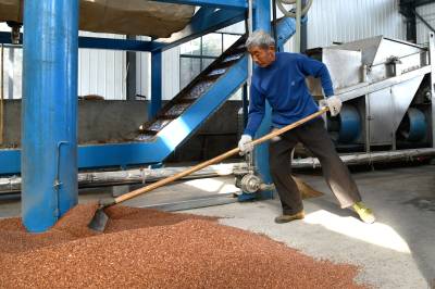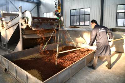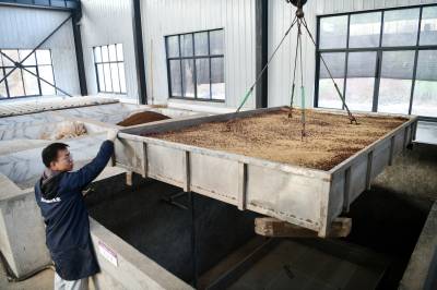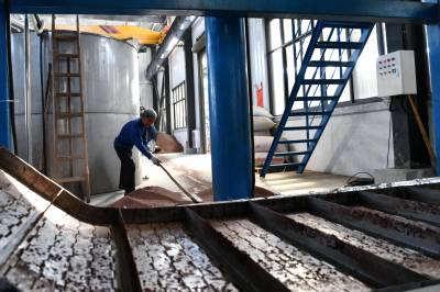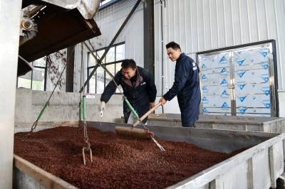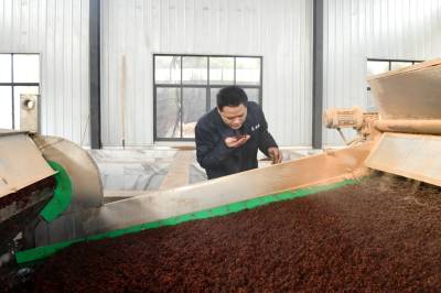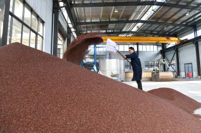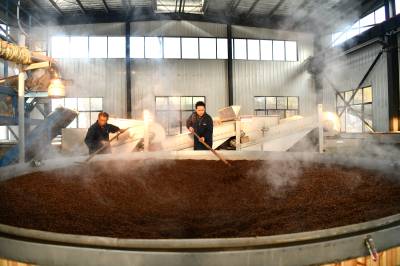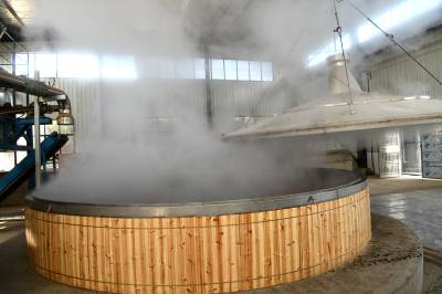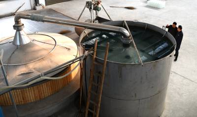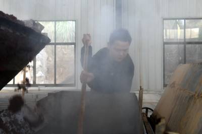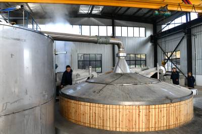 2022年11月10日,湖北省咸宁市通城县北港镇龙门村,村民忙碌在道鑫隆酒业公司,生产高粱酒。
