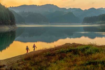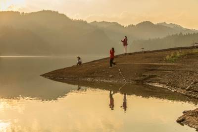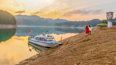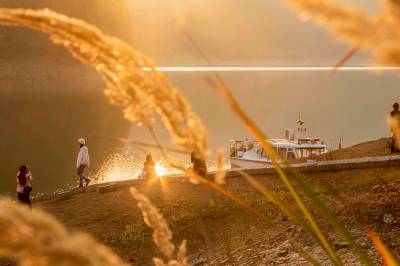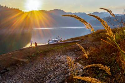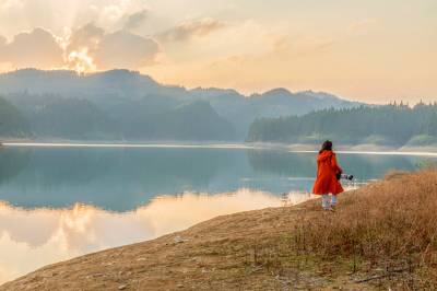 2022年11月9日,湖北利川市,佛宝山湿地在夕阳照射下格外迷人,吸引游客游玩打卡。