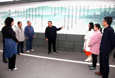 谷城农村追求精神富强 谷城县城关镇安家岗村的村民们富裕了,村里经济实力增强了,党支部就带领村民们追求精神富强,在村里兴办文化工程,发展文化项目,如新建文化广场、诗歌墙,在村民房舍墙上绘画。现在人们走进安家岗村,村容村貌焕然一新,浓厚的文化氛围扑面而来。11月11日,村党支部书记尚安仁(中)在向县作家协会采风成员介绍村里的诗歌墙。 通信住址:谷城县城粉阳路33号(宣传部)帅瑜 摄 手机号码:13972211958 邮政编码:441700