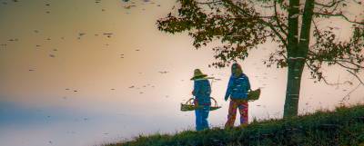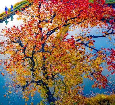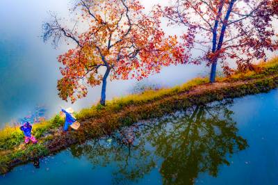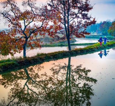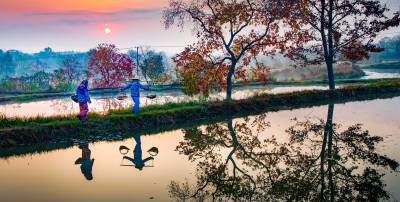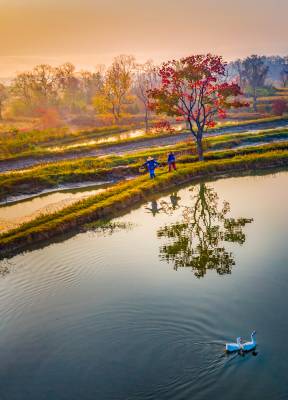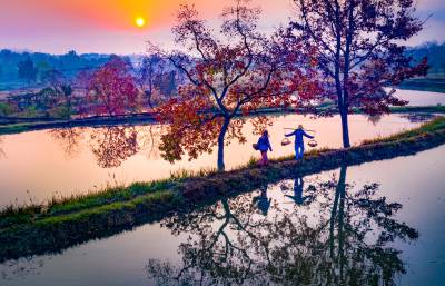湖北南漳:一汪湖水映晚霞