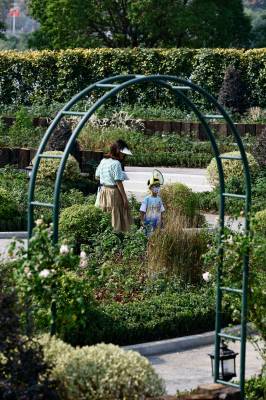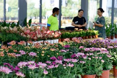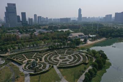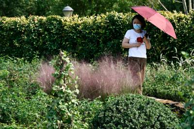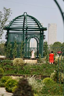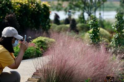 2022年10月1日,武汉市东西湖区金银湖畔,刚建成不久的月季花园,月季绽放。(湖北日报全媒记者 倪娜 摄)