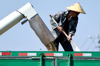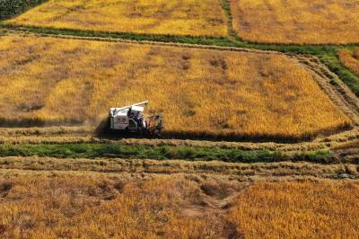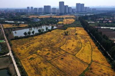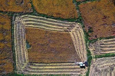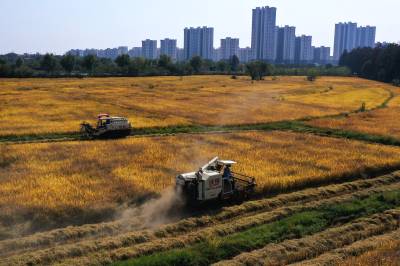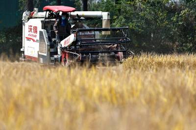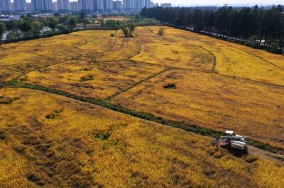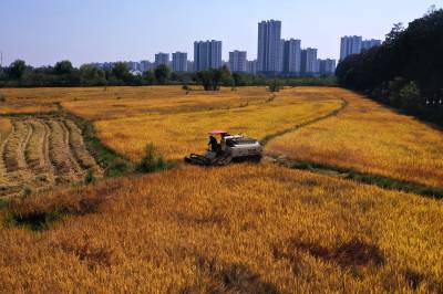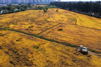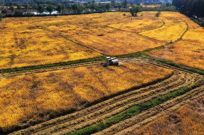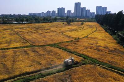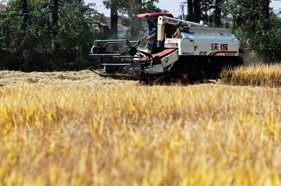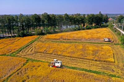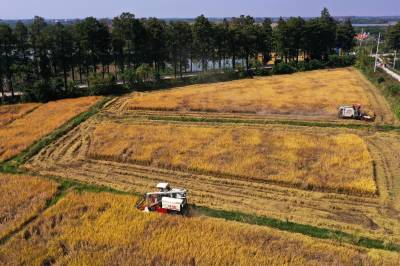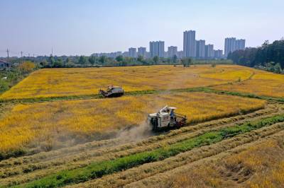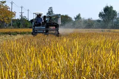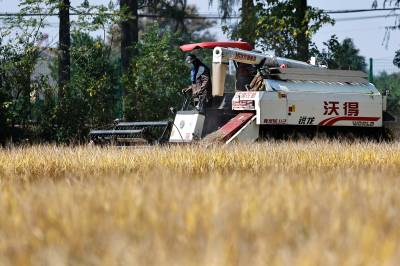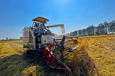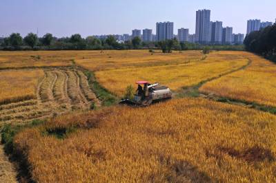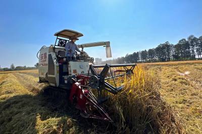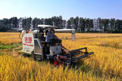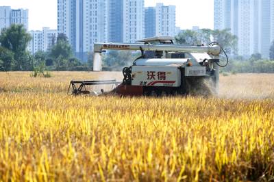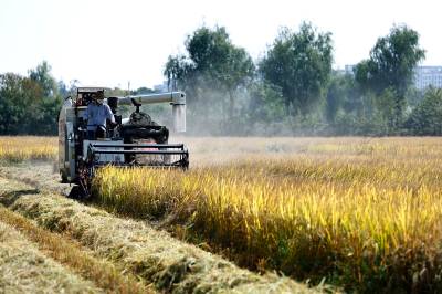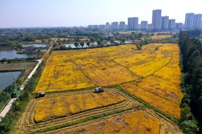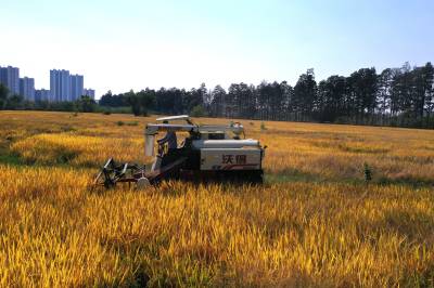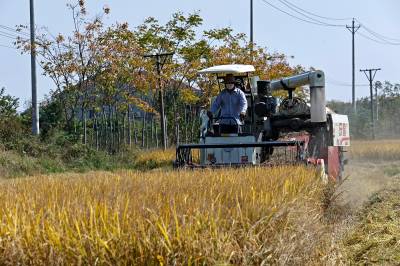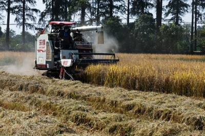 2022年10月15日,在武汉市东西湖区柏泉街红卫大队300多亩优质水稻黄华占正在进行收割,进行烘干后将直接送往益海嘉里粮油工业有限公司。据介绍,东西湖区农业农村局,围绕不同优质品种打造水稻产业链,依托益海嘉里、良品铺子等龙头企业,建设龙头企业+合作社+家庭农场+农产品的优质产品联合体,着力推进水稻产业高质量发展。 (湖北日报全媒记者 倪娜 通讯员 徐一帆 刘仪聆 摄)