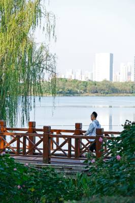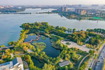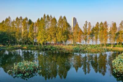 2022年10月18日,清晨的金银湖国家湿地公园。(湖北日报全媒记者 倪娜 摄)