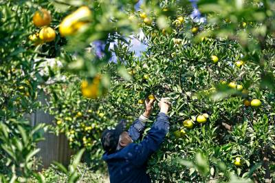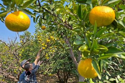 2022年10月22日,在武汉市东西湖区柏泉街园林大队成片的橘园里一片丰收景象,橘农正在园内采收,不时有游客入园采摘。据介绍,柏泉街作为该区打造“全域旅游”的示范区域,近年来围绕既有柏泉茶湾、府河湿地、府河观鸟台、杜公湖湿地公园等旅游资源,提档升级、着力开发生态游、农业旅游等特色旅游线路,全面提升区域旅游品质。 (湖北日报全媒记者 倪娜 通讯员 徐卉婷 刘仪聆 摄)