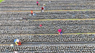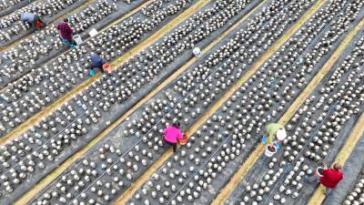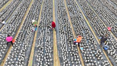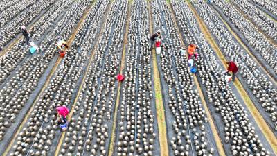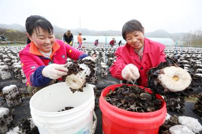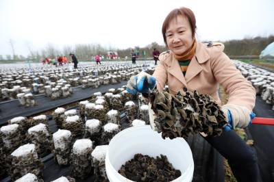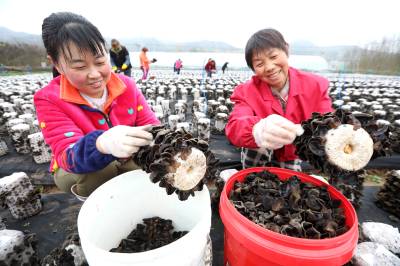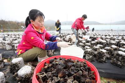 2022年11月15日,十堰市房县军店镇月明村农民在食用菌产业基地采收黑木耳。房县是驰名中外的“木耳之乡”,近年来,该县采取“公司+合作社+农户”的模式,发展规模型、质量效益型黑木耳、香菇等食用菌产业,实现农业提质增效,促进乡村振兴。如今,当地黑木耳入选首批中欧地理标志协定保护名录,“燕牌”黑木耳销往日本、东南亚以及法国、联邦德国等海外“五大洲”30多个国家和地区,年均实现产值9.2亿元,创汇9500万美元,食用菌成为乡村振兴、带动农民共同增收致富的支柱产业。