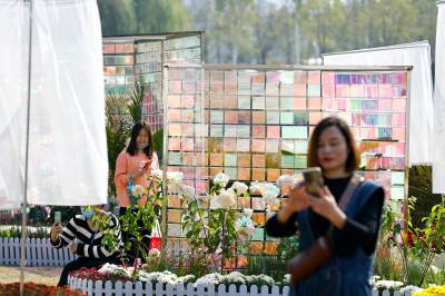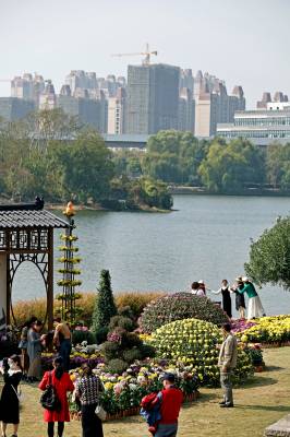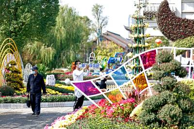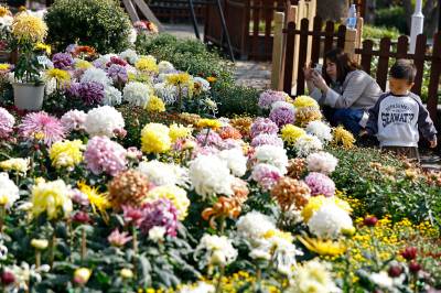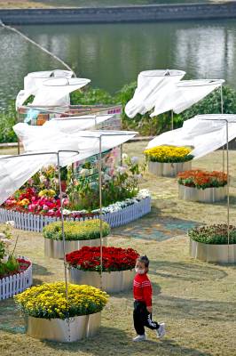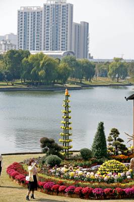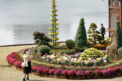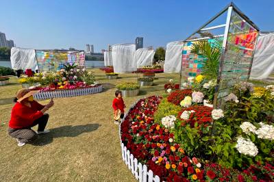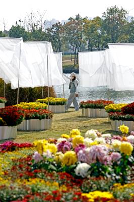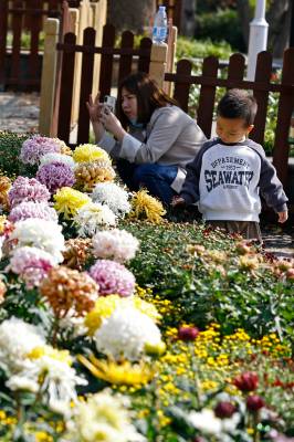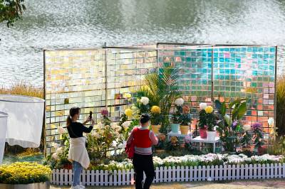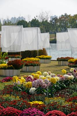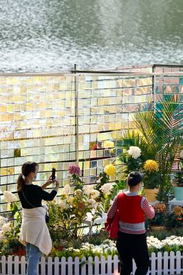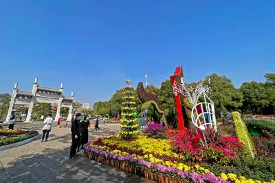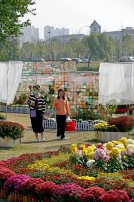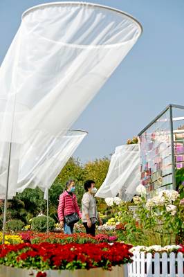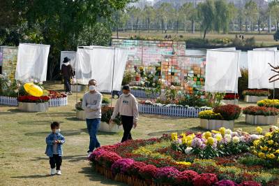 2022年10月31日,在武汉市东西湖区码头潭文化遗址公园内,菊花竞相开放,吸引市民前来赏花。武汉市第39届东西湖区26届金秋菊展即将拉开帷幕。据介绍,此次菊展展出面积约6000平方米,共有各类菊花1300余种。展区布局有效与市民互动,让人在花中走,花在人中美。同时,公园严格执行扫码、测温,请市民佩戴好口罩,有序入园。 (湖北日报全媒记者 倪娜 通讯员 晏君 摄)