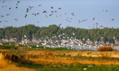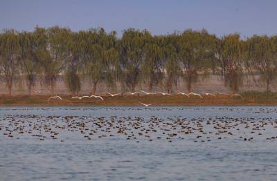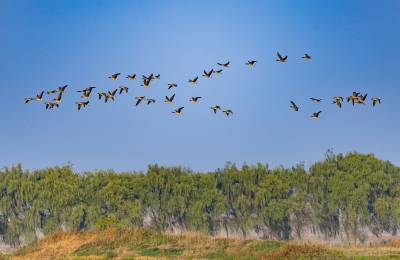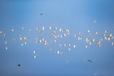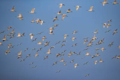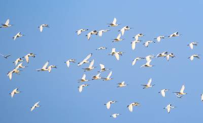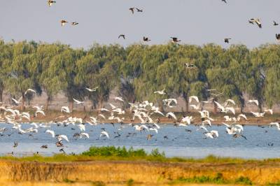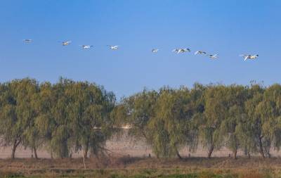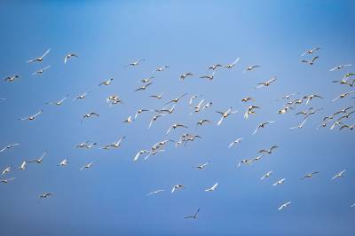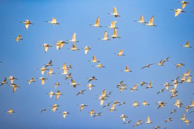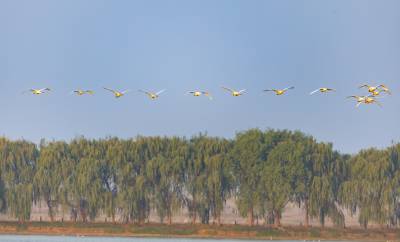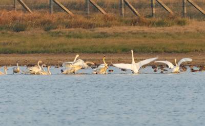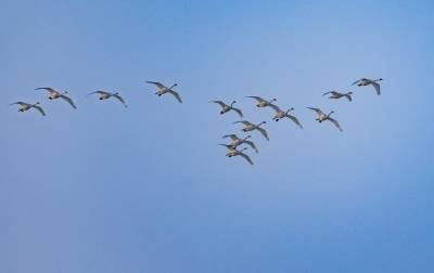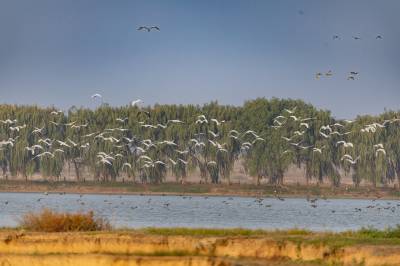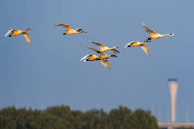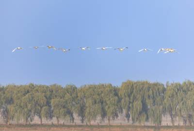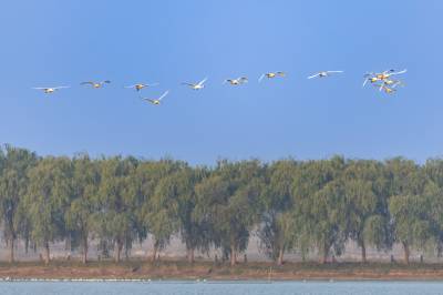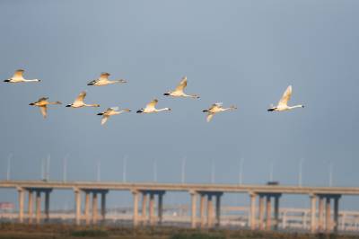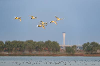 2022年10月31日黄昏时分,在武汉市东西湖区柏泉府河天鹅湖,空中飞翔的小天鹅,在湖面同伴的召唤下,顺利汇合,准备越冬。除了小天鹅,湖面上还能看到白鹭、豆雁、鹬、鸬鹚等大量鸟类在此栖息。据在现场护鸟队队长汤国社介绍,目前湿地已经有近万只候鸟来临,其中小天鹅有近百只,而今年鸟类到来的时间比去年提前了十多天。武汉府河湿地,生态良好,水资源丰富,每年都会吸引数万只来自中国东北或西伯利亚的候鸟在此停歇越冬。(湖北日报全媒记者 倪娜 通讯员 刘仪聆 晏君 摄)