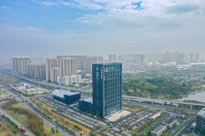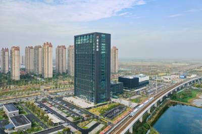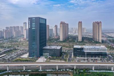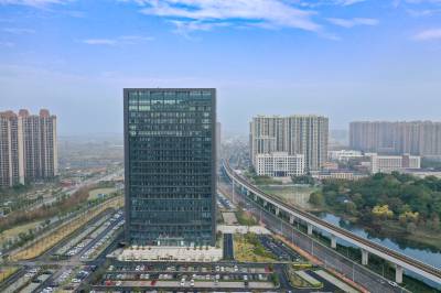 2022年11月16日,航拍武汉市东西湖区码头潭综合楼。近日,武汉市2021年度(第二十三届)建设工程黄鹤奖评选结果揭晓,由武汉市东西湖自来水公司建设,武汉建工集团股份有限公司承建的码头潭综合楼获黄鹤奖金奖。(湖北日报全媒记者 倪娜 摄)