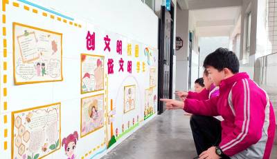 据悉,该校的走廊文化,每学期更换一次,各班每学期都有新的主题。学校组织集中评比,对于优胜的班级,颁发奖状予以奖励。让班级文化丰富走廊文化,让走廊文化丰富校园文化,让校园文化沁润童心。让学生在创办的过程中,培养兴趣,提升能力,陶冶情操。让走廊成画廊,校园成花园,达到环境育人的目的。(视界网 张云朝 王喜苹摄)