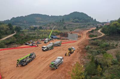 11月17日,宜昌市夷陵区小溪塔街办仓屋榜村五组横溪地带, 全省首条绿电货运通道(矿山专用路)箱涵浇筑工程正争分夺秒施工。横溪是矿山专用路的建设起点,首个箱涵混凝土涵洞在这里浇筑。80名建设者,30台大型机械以横溪为轴心,东向鸦鹊岭梅店,西向东城试验区冷水口延伸。