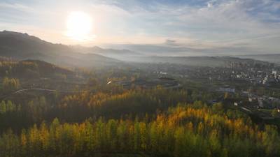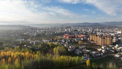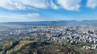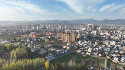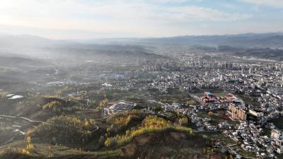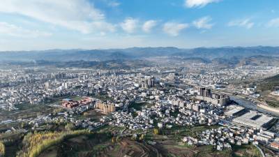2022年11月17日,使用无人机拍摄的十堰市房县县城。今年以来,房县抢抓创建全国文明城市为契机,全面推进旧城“穿衣戴帽”改造、城市绿化、交道条件改善、环境卫生整治、城区河道生态治理等硬件基础设建设,提升文明创建志愿服务、人文关怀、文明素养养成的文明城市创建文化“软”实力,绘制城区4A级“全域景区”。共建文明城市,共享文明成果,天更蓝、水更清、街道更整洁、市民的笑容更灿烂,文明城市创建让市民拥有更多获得感、幸福感。