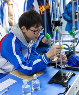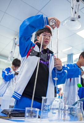 近日,宜昌市长江中学正在举办高中生化学操作技能大赛,学校希望通过比赛活动,来更好地落实化学新课程标准,促进学生实际操作技能得到锻炼,得到的提高。