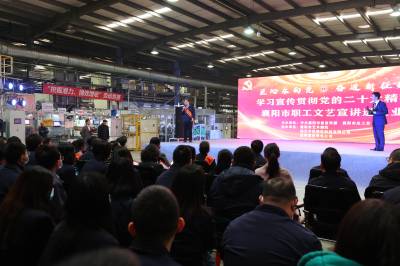 11月18日,在湖北中航精机科技有限公司调角器车间彩旗飞扬,由中共襄阳市委宣传部、襄阳市总工会联合主办——“匠心永向党 奋进新征程”学习宣传贯彻党的二十大精神襄阳市职工文艺宣讲进企业在此启动首场宣讲活动。党的二十大代表、全国劳动模范熊会萍率先为大家宣讲党的二十大精神,分享自己此次参加党的二十大的体会;宣讲团成员们把理论和文艺相结合,演出了襄河道坠子《新时代襄阳更美好》、快板《意气风发向未来》、戏曲联唱《我们这十年》、舞蹈《快递小哥》、歌曲《匠者初心》等具有襄阳特色的节目。总工会近期还将组织宣讲团走进时瑞达重型机械有限公司、麒麟工业园、中铁十一局重点项目工地等生产一线,示范带动各级工会扎实开展进企业宣传宣讲活动。