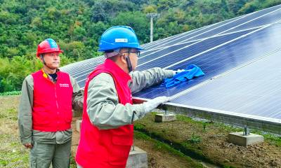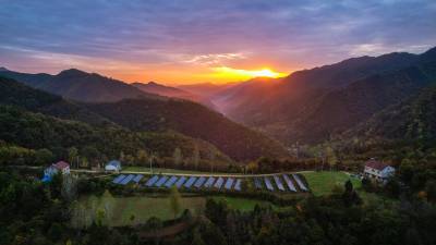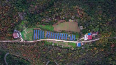 11月17日,在湖北省南漳县李庙镇石桩河村,一排排光伏发电板在阳光照射下正源源不断地对外输送绿色低碳电能,光伏发电板与周边村庄、田园相映成趣,构成一幅和谐的生态美景图。该光伏发电项目于2017年建设,是石桩河村扶贫发电产业,日发电量可达7320度,每年可为石桩河村带来13万元的集体收入。为了更好的服务光伏发电项目,国网南漳县供电公司定期对全县光伏发电站进行维护,确保光伏发电设备平稳运行,发电正常。(视界网 刘江、罗雨摄)
